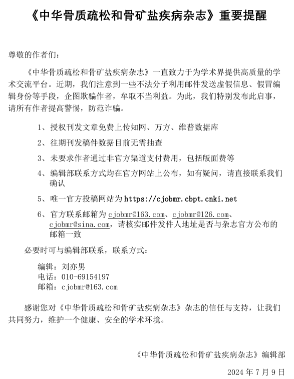 Chinese Journal of Osteoporosis and Bone Mineral Research